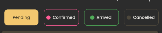 2. Kedua Bisa Melihat Pada “Reservation” lalu gambar di bawah ini ada pada pojok kanan atas. 4 Status ini Pending, Confirmed, Arrived, Cancelled bisa di klik untuk mengetahui apakah reservasi customer sudah berhasil atau belum berhasil. Karena terkadang ada customer yang sudah booking namun status reservasinya belum masuk ke pending dan di layout masih berwarna kuning yang artinya meunggu pembayaran. Jika status reservasinya ada di Pending artinya reservasi sudah berhasil dan tinggal menunggu customer datang ke outlet. Jika Reservasinya hilang, boleh melakukan pengecekan di semua status lainnya seperti di Confirmed, Arrived, atau Cancelled.